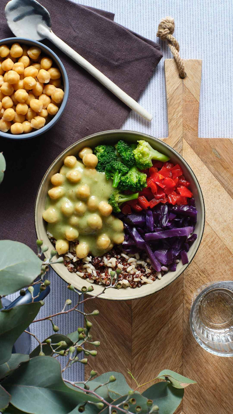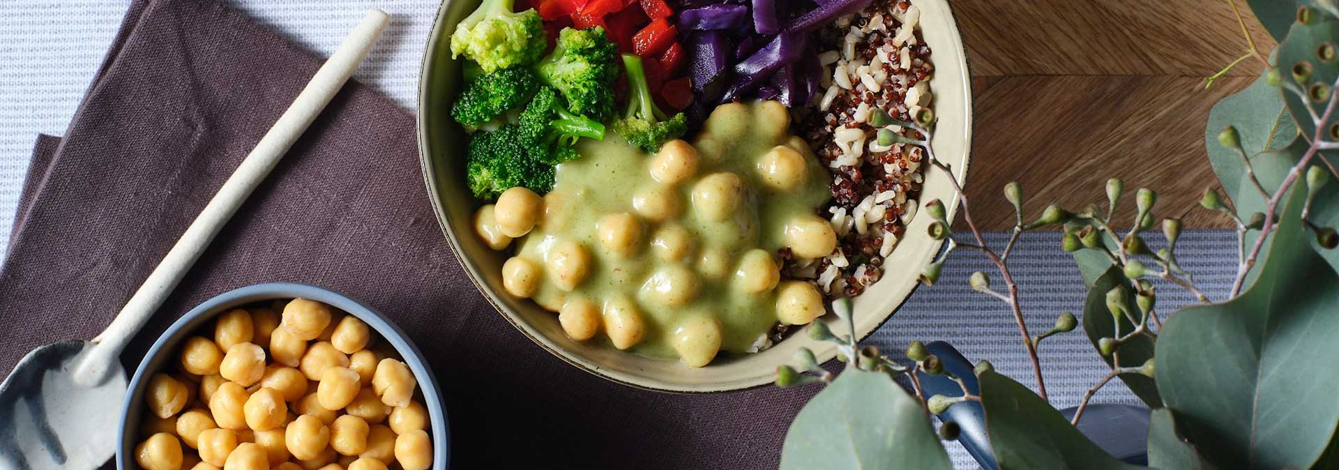 Delicious coconut and chickpea curry with quinoa and brown rice.